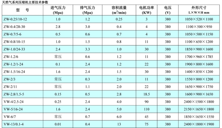 天然氣增壓壓縮機為往復活塞式。該系列壓縮機品種多,規(guī)格全,適用于天然氣回收、集氣、注氣、掃線、增壓、輸送等不同工業(yè)需要。該系列壓縮機潤滑方式有有油和無油潤滑,冷卻方式有水冷和風冷等多種形式。同時,該系列產(chǎn)品還具有占地面積少、重量輕、噪音低、運行平穩(wěn)、安全可靠等特點。另外,可根據(jù)客戶的不同需求,設計制造不同排量和壓力的天然氣壓縮機。
