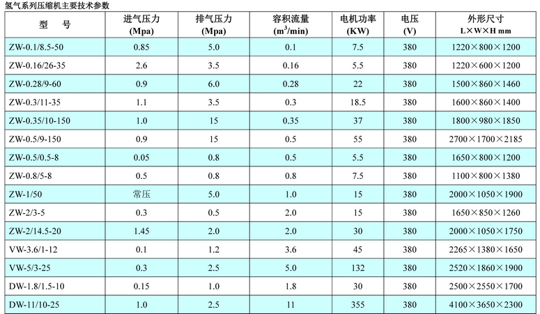 無油潤滑氫氣壓縮機為往復活塞式。該系列壓縮機品種多,規(guī)格全,廣泛用于制氫系統(tǒng)、氫氣充瓶、苯加氫、焦油加氫、催化裂化等工藝。該系列產品設計新穎、布局合理、噪音低、運行平穩(wěn)、操作方便、安全可靠等特點。另外,可根據客戶的不同需求,設計制造不同排量和壓力的氫氣壓縮機。